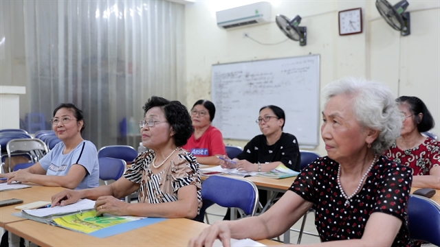 하노이(Hà Nội)에서 노인들을 위한 특별 영어 수업이 진행 중이다.