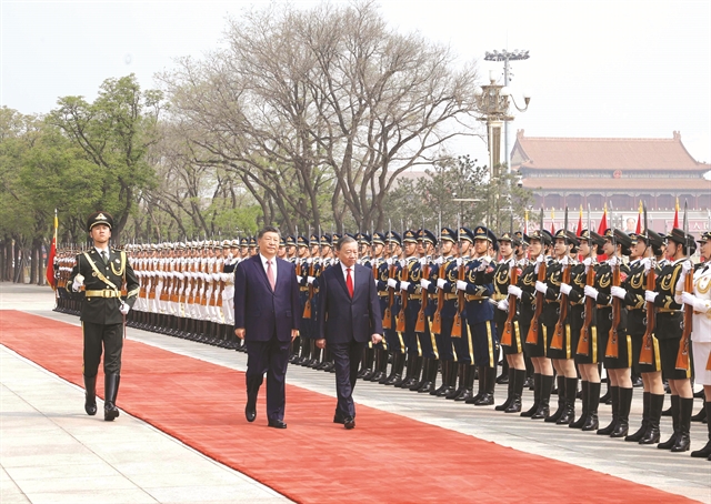 시진핑과 또 럼은 명예의 단상에서 인사를 나눈 뒤 중국 인민해방군 의장대를 함께 사열했다.