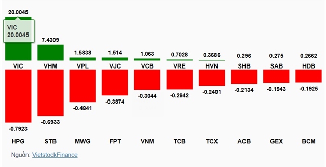 빈홈즈(Vinhomes·VHM)는 5.17%, 빈컴리테일(Vincom Retail·VRE)은 3.38%, 빈그룹(Vingroup·VIC)은 0.74% 하락해 지수에 부담을 줬다.