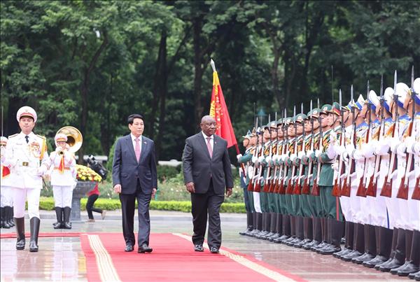 르엉 끄엉 베트남 국가주석이 시릴 라마포사 남아공 대통령을 위한 국빈 환영식을 주재하고 정상회담을 열어 양국 관계를 한 단계 격상시키기로 논의했다.