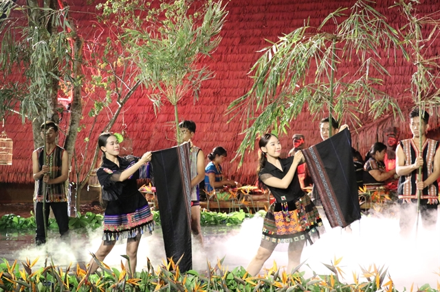 비니 푸억에서 S'Tiêng 민족의 전통 브로케이드 직조문화를 기념하는 패션쇼가 열렸다.