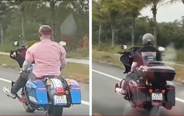 베트남 꽝남성에서 두 명의 한국인이 오토바이를 핸들 없이 주행하며 벌금을 받았다.