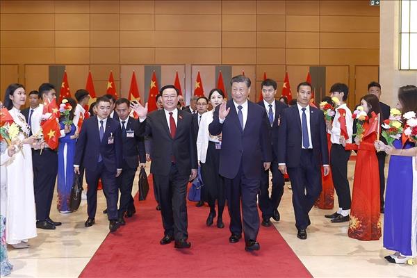 베트남 국회의장과 중국 주석이 양국 관계의 새로운 위치를 마련하고 공동체 구축을 통해 기쁨을 표현하며 양국 협력 강화를 요청했다.