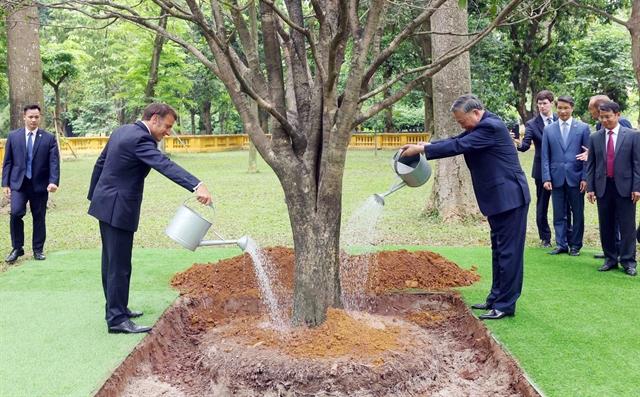 베트남 토 람 총서기와 프랑스 에마뉘엘 마크롱 대통령이 하노이의 호찌민 유적지를 방문하며 양국의 우정을 기념하는 나무를 심었다.