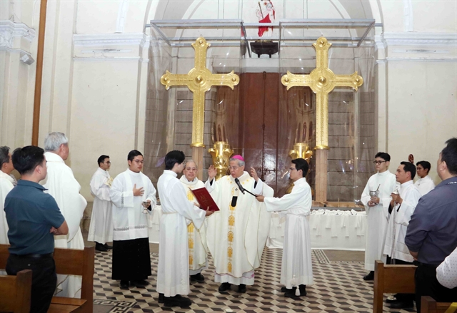 사이공 노트르담 대성당이 벨기에에서 제작한 새 십자가 두 개를 축복하고 복원 주요 부문 완성 단계에 접어들었다.