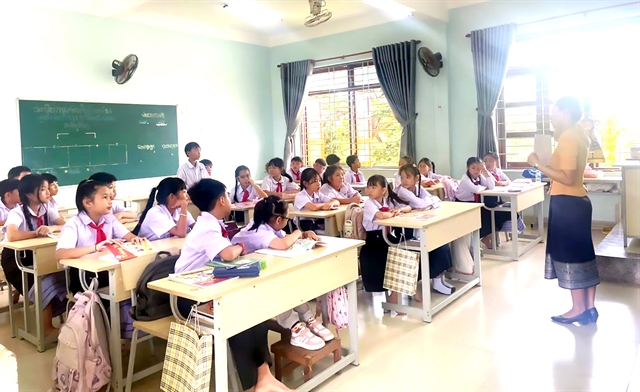 참파삭(Champasak) 라오스-베트남 우정학교가 지역 학생들에게 베트남어와 문화교육을 제공하며 양국 우호관계를 강화하고 있다.