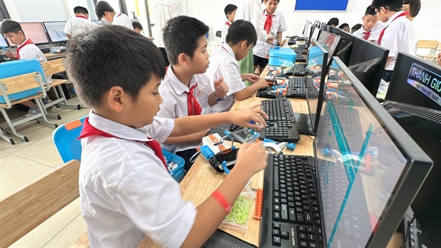 하노이의 한 시골 초등학교가 학생들에게 로봇 공학과 AI 수업을 통해 기술교육을 장려하고 있다.