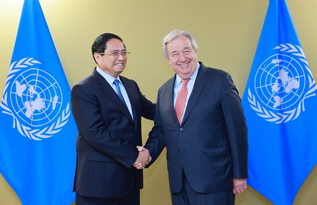 팜민찐 총리는 유엔 사무총장과 회담에서 기후대응·에너지 전환, 국제금융개혁 등 분야에서 유엔과 협력을 강화하기로 합의했다.