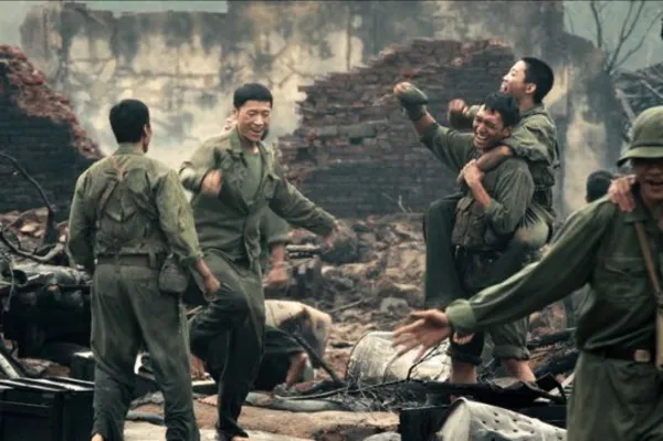 영화 '붉은 비'는 꽝찌 전장을 배경으로 항미 전쟁 당시 대학생·고교생 출신 젊은 병사들의 희생과 연대를 장엄하게 그려낸 허구의 서사다.