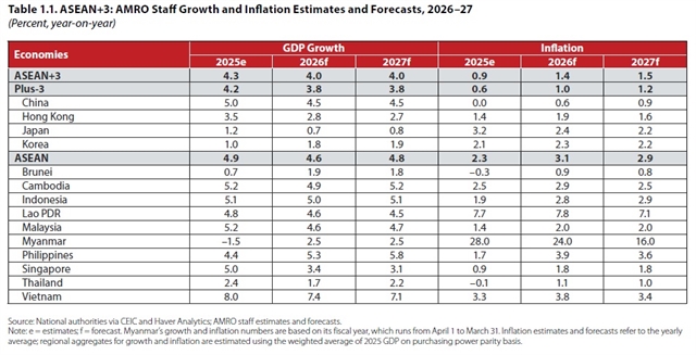 경제 베트남, 2026~27년 아세안+3 최고 성장률 전망…하노이(Hà Nội)서 AMRO 발표 AMRO는 2026~27년 베트남 GDP 성장률이 7.4%, 7.1%로 아세안+3 최고 수준이며 물가는 3.8%로 안정적이라고 하노이(Hà Nội)에서 전망했다. 게시 시각 4일 전
