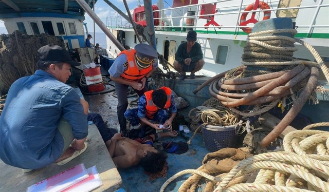 해안 경비대가 심각한 복통으로 긴급 이송된 어부를 꽝남에서 치료했다.