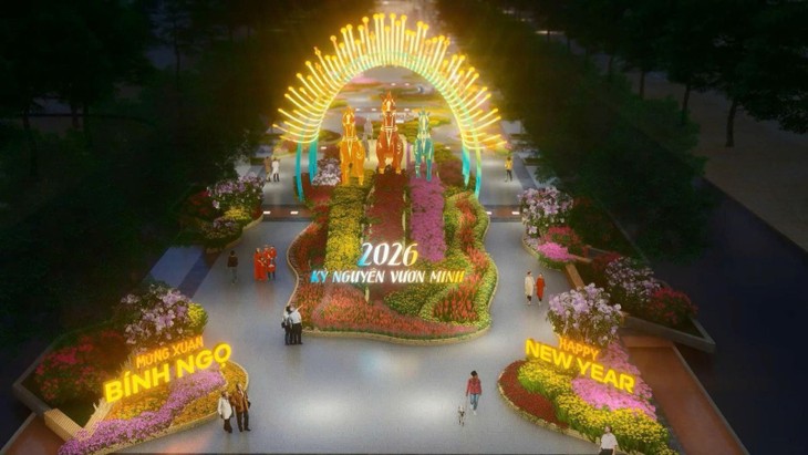2026년 메가시티 도약을 앞둔 호찌민 일원에서 응우옌후에 설 꽃길이 주간·야간 버전의 대형 꽃 설치와 첨단 조명·매핑 기술로 역대 최대 규모로 연출된다.