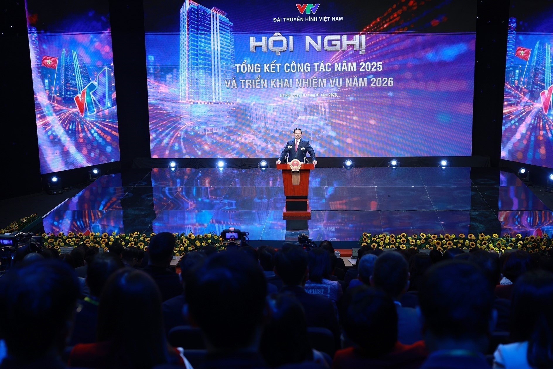 팜 밍 찡 총리가 VTV의 2025년 총결산 및 2026년 임무 전개 회의에서 미디어의 역할과 향후 정책 추진의 중요성을 강조했다.