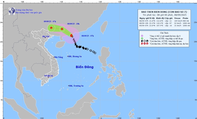 국가기상센터는 태풍 칼마에기(Kalmaegi)가 11월 5~6일 중부 동해상(트루옹사 군도 포함)에 도달해 매우 강한 바람과 높은 파고를 일으킬 것이라고 경고했다.