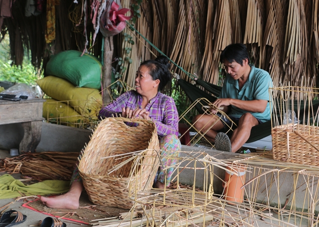까마우(Cà Mau) 홍단(Hồng Dân) 지역 주민들이 물옥잠 엮기 전통공예로 안정적 소득을 얻고 환경 개선에도 기여하고 있다.